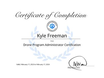 Graduated from Drone Pilot Ground School in 2018 and passed the Part 107 Exam with 95% Passed the DPGS flight test as well.